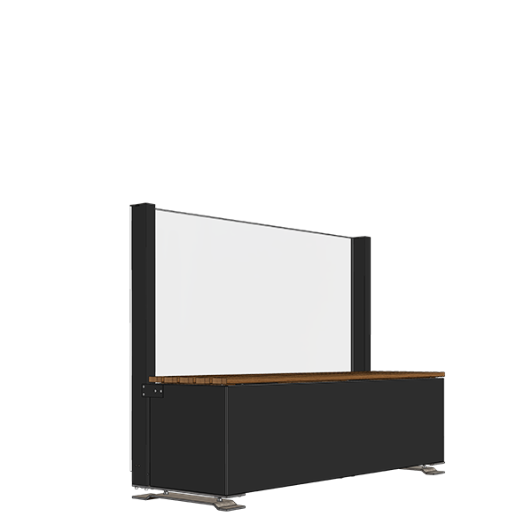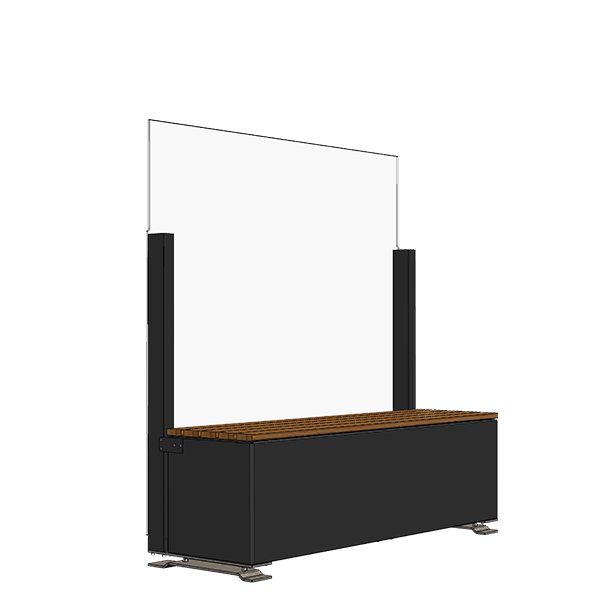 High fixed wind screen as a freestanding section by combining CiUWindscreen with a planter box or bench.